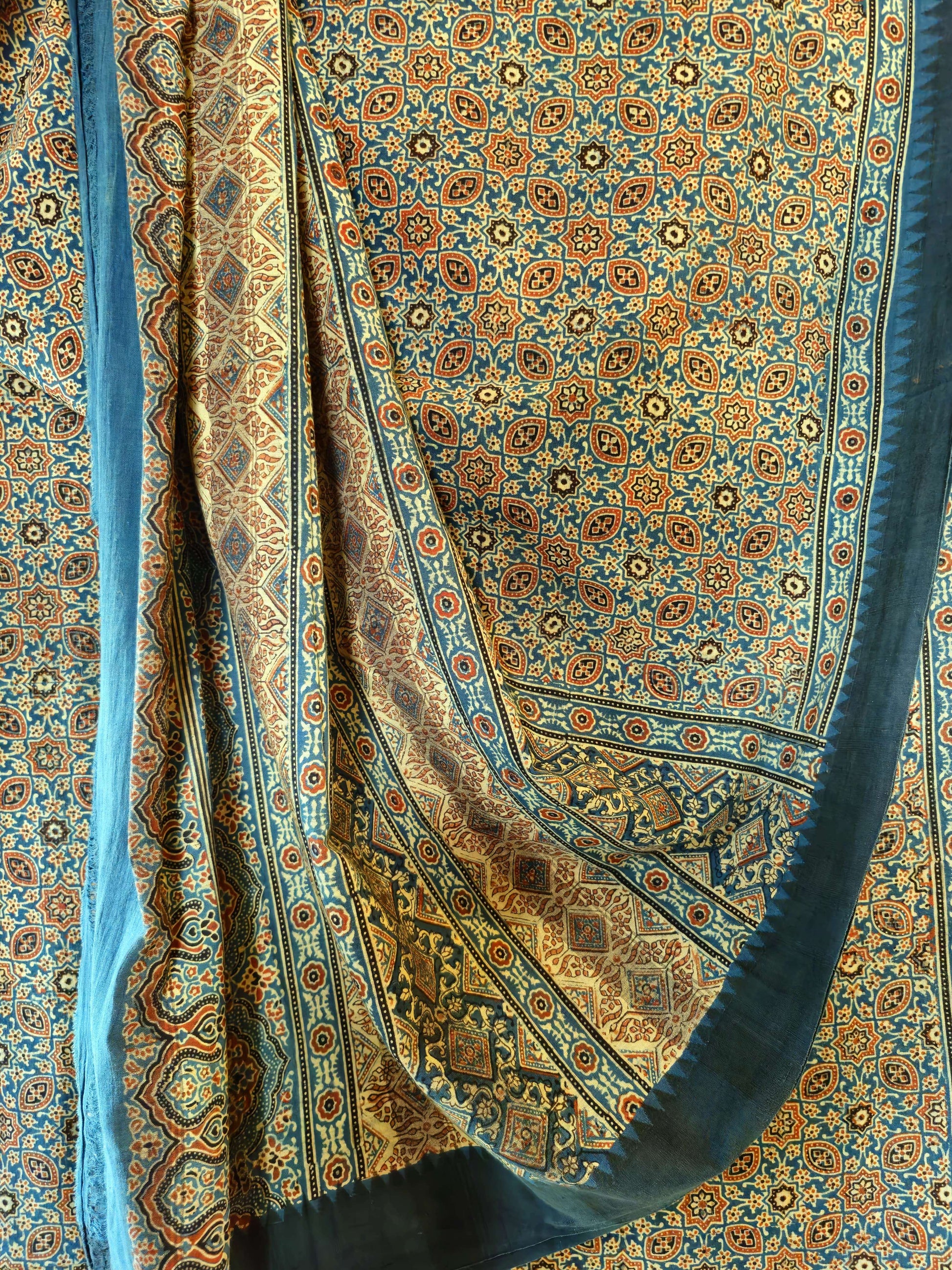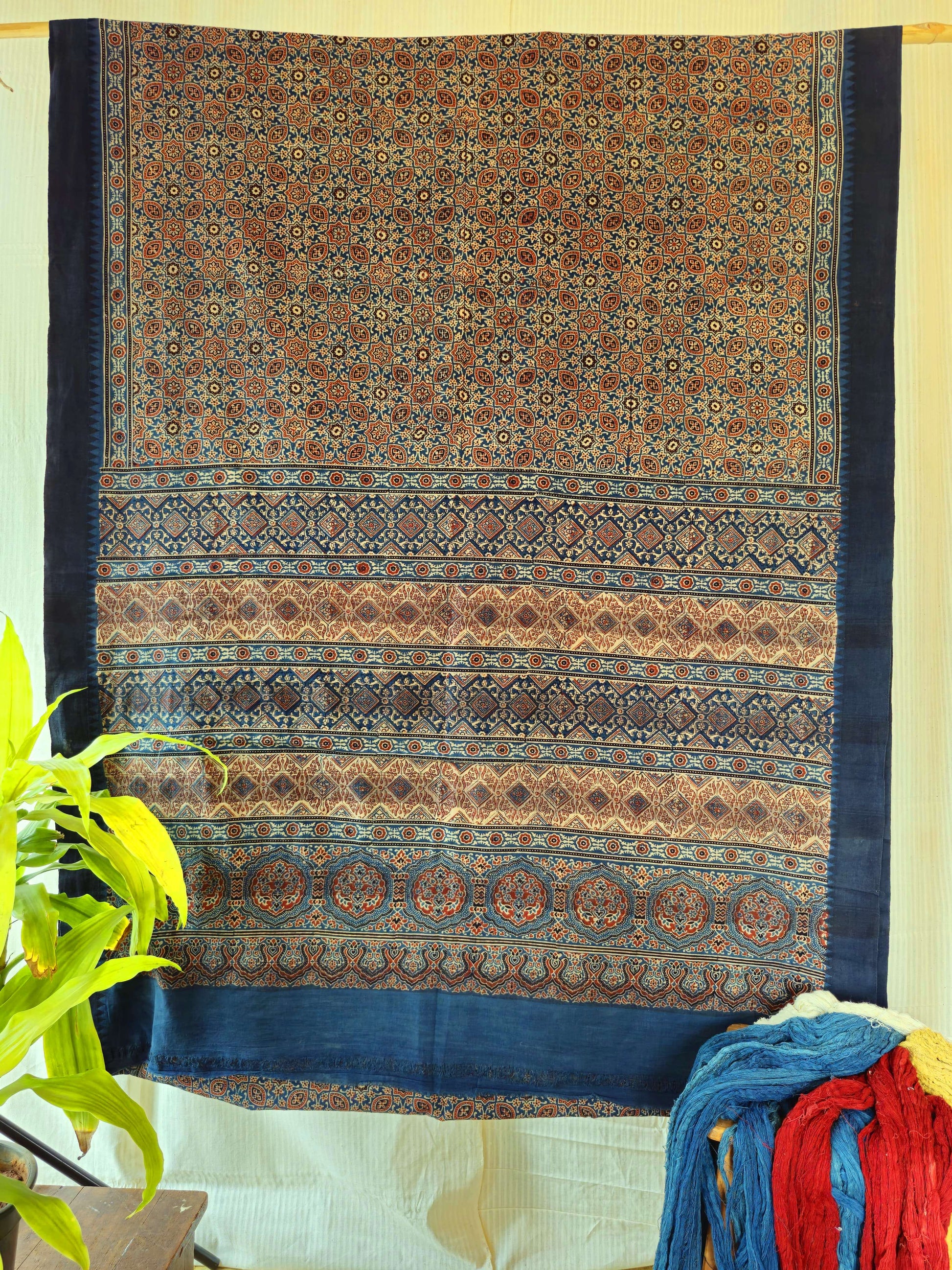 AJRAKH SAREE : INDIGO BLUE : ALIZARIN RED : BLACK