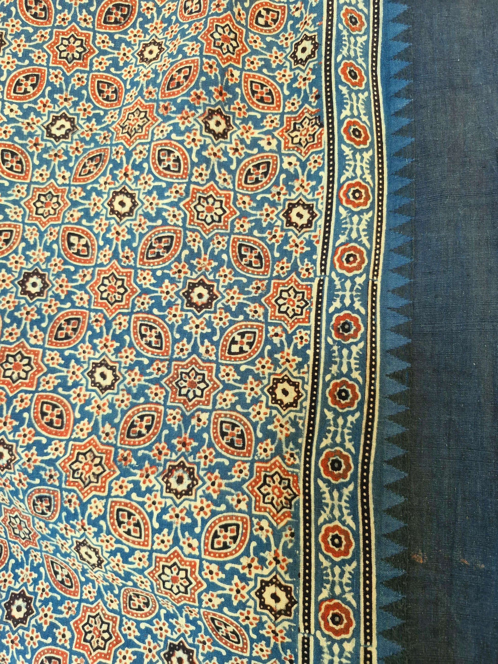 The specialised printing technique of the Kutch region of Gujarat; the origins and meanings of Ajrakh are as diverse as they are romantic. Some say it means “keep it today”, others that it is the Arabic word for indigo. Either way, the motifs are all geometric, harkening to their Islamic origin and the colors historically tend to be predominantly red and indigo.