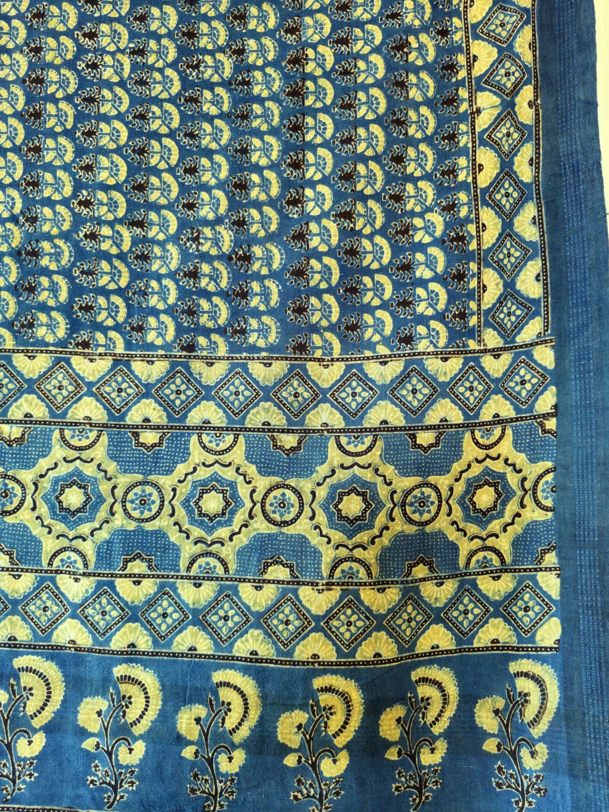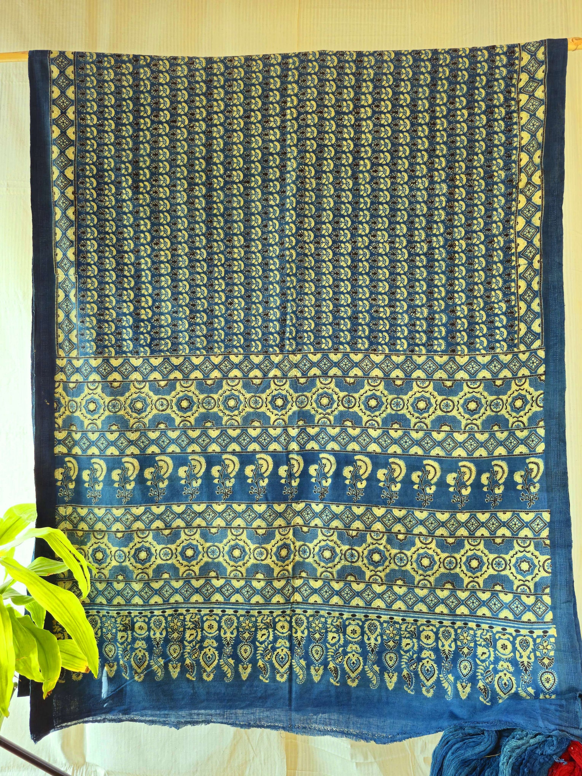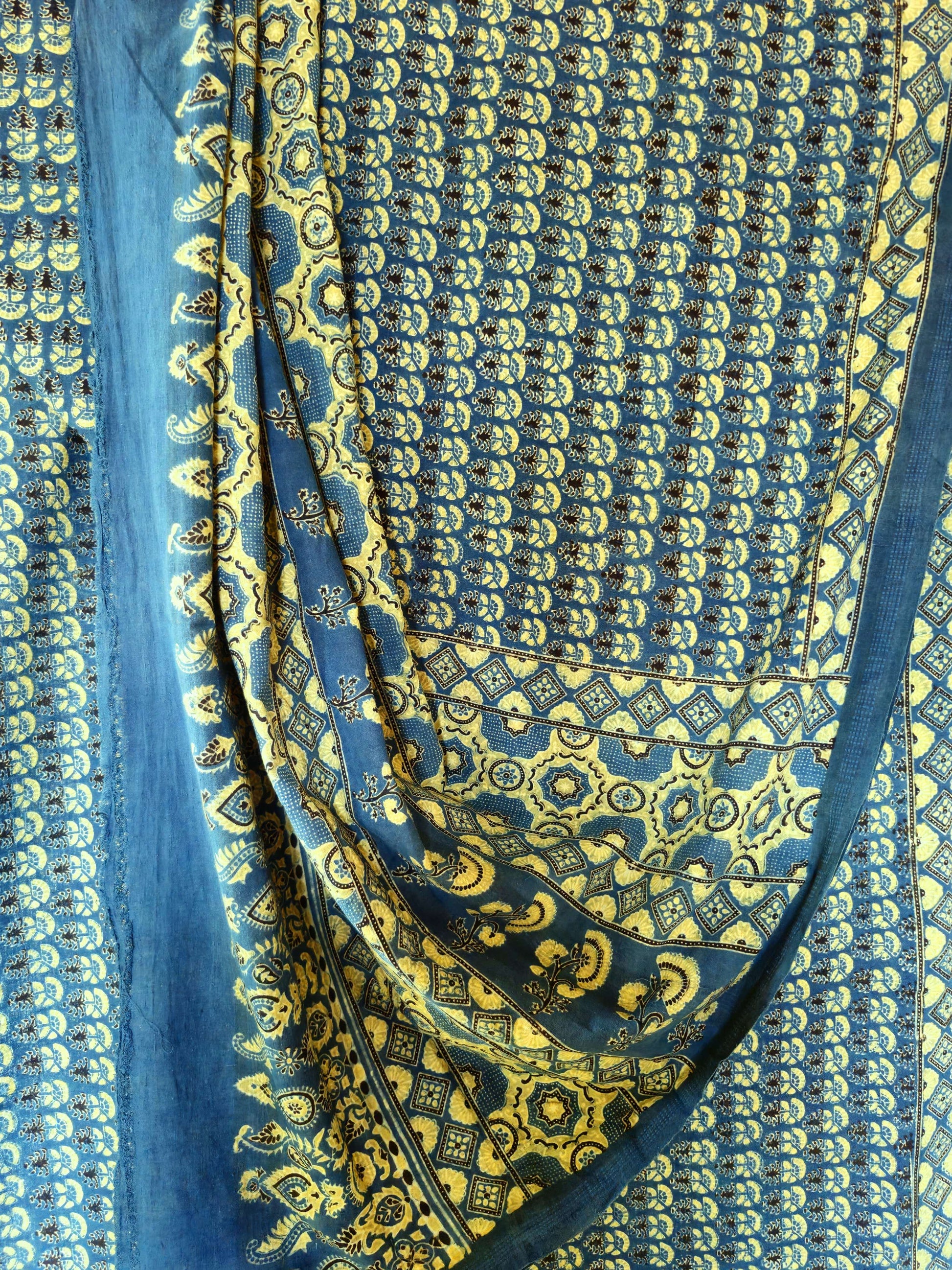 AJRAKH SAREE : DARK INDIGO : ANAR YELLOW