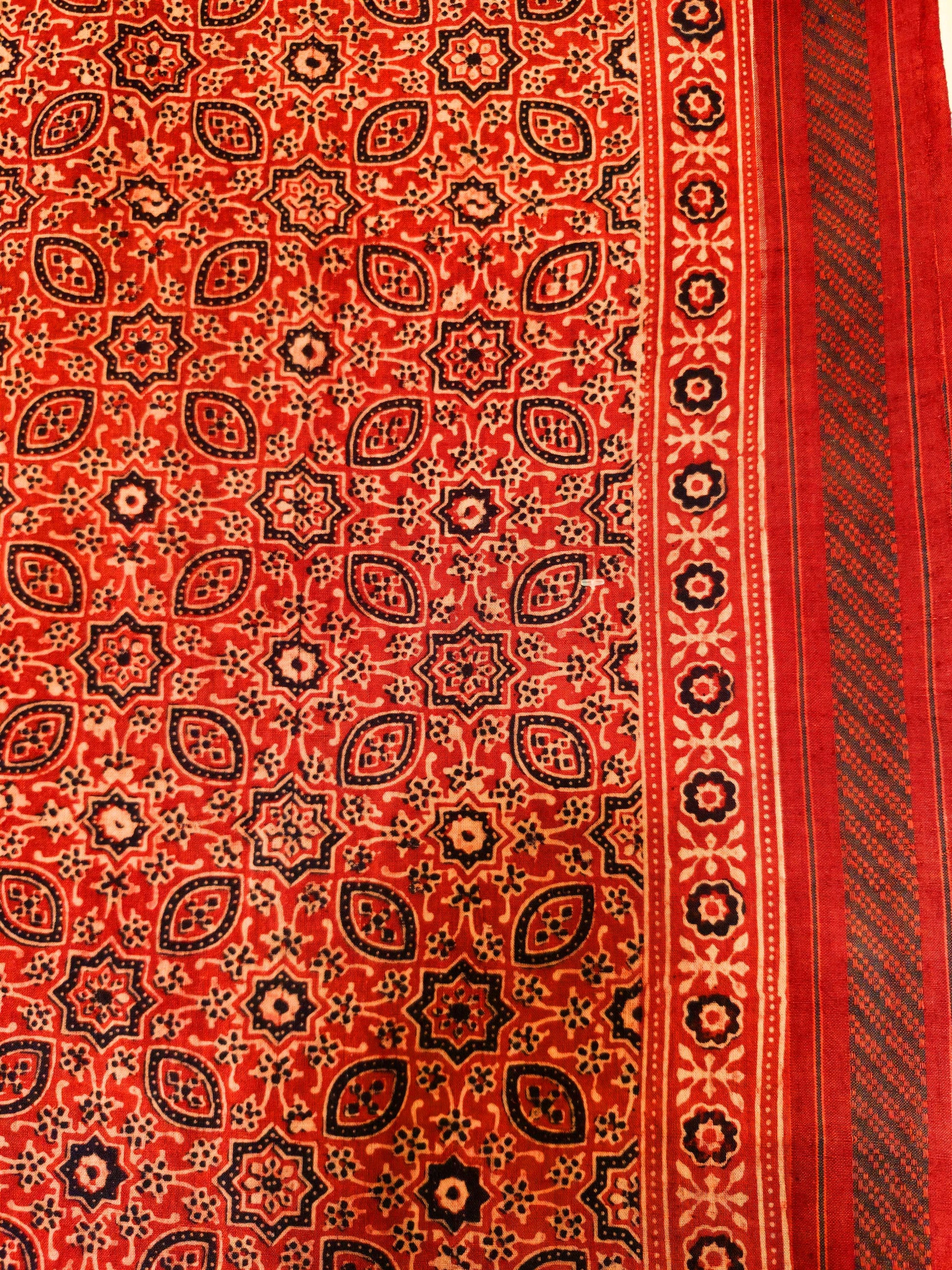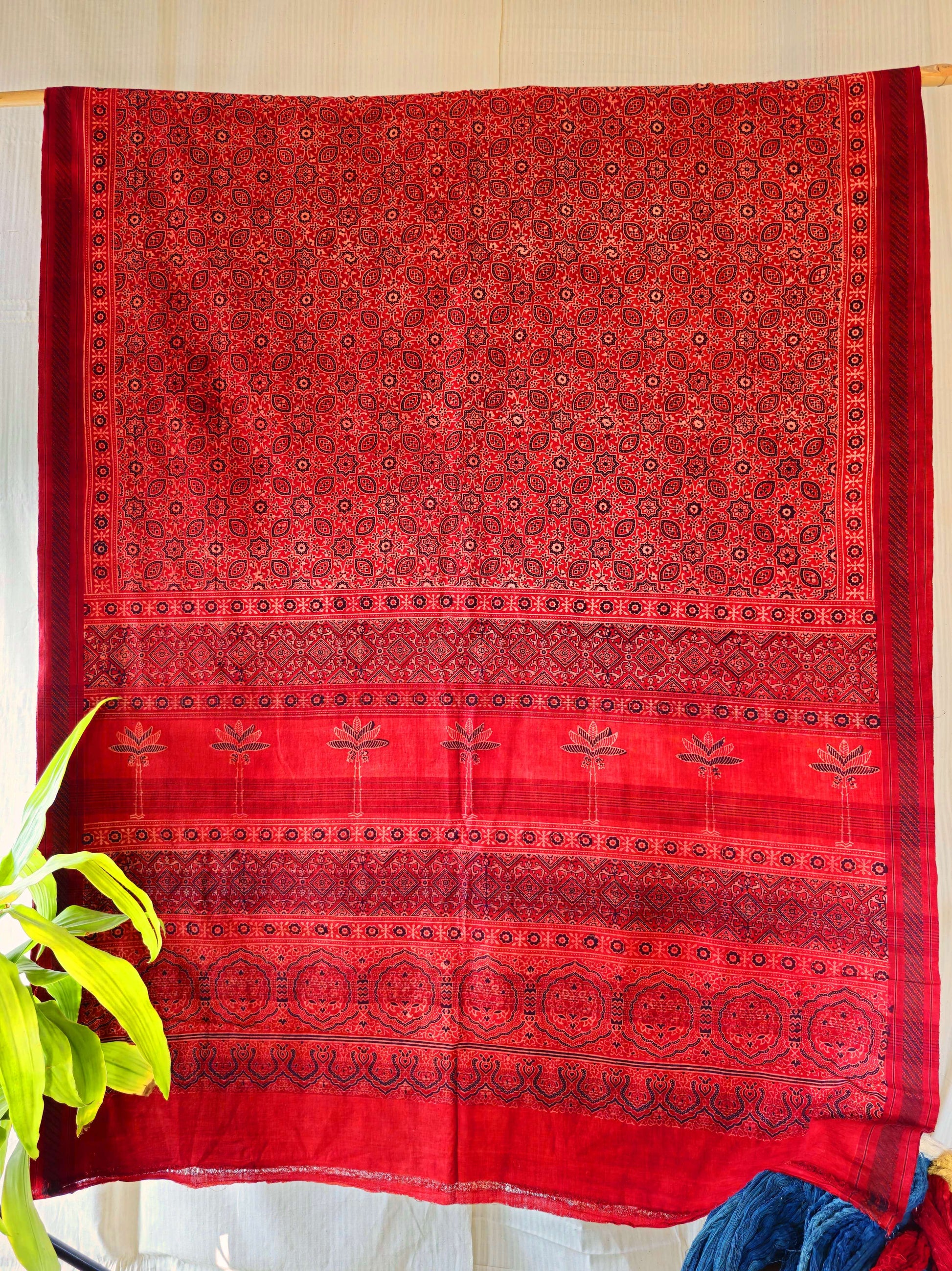 AJRAKH SAREE : ALIZARIN RED : BLACK