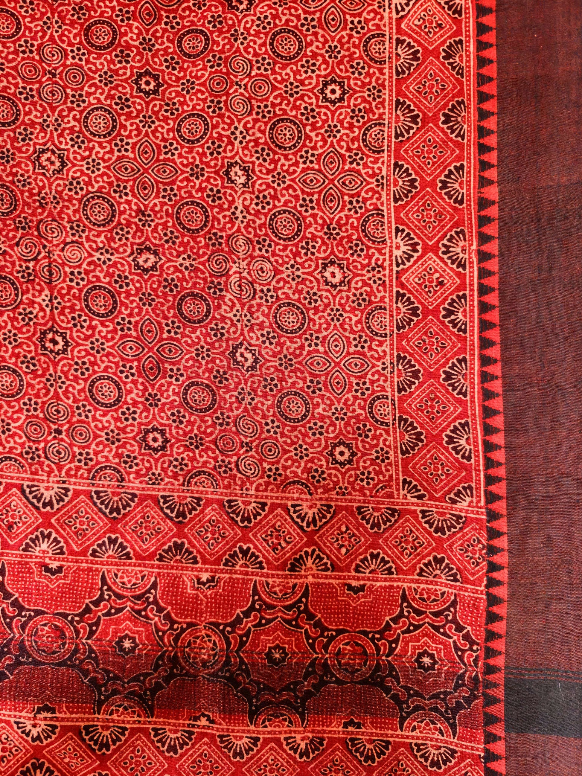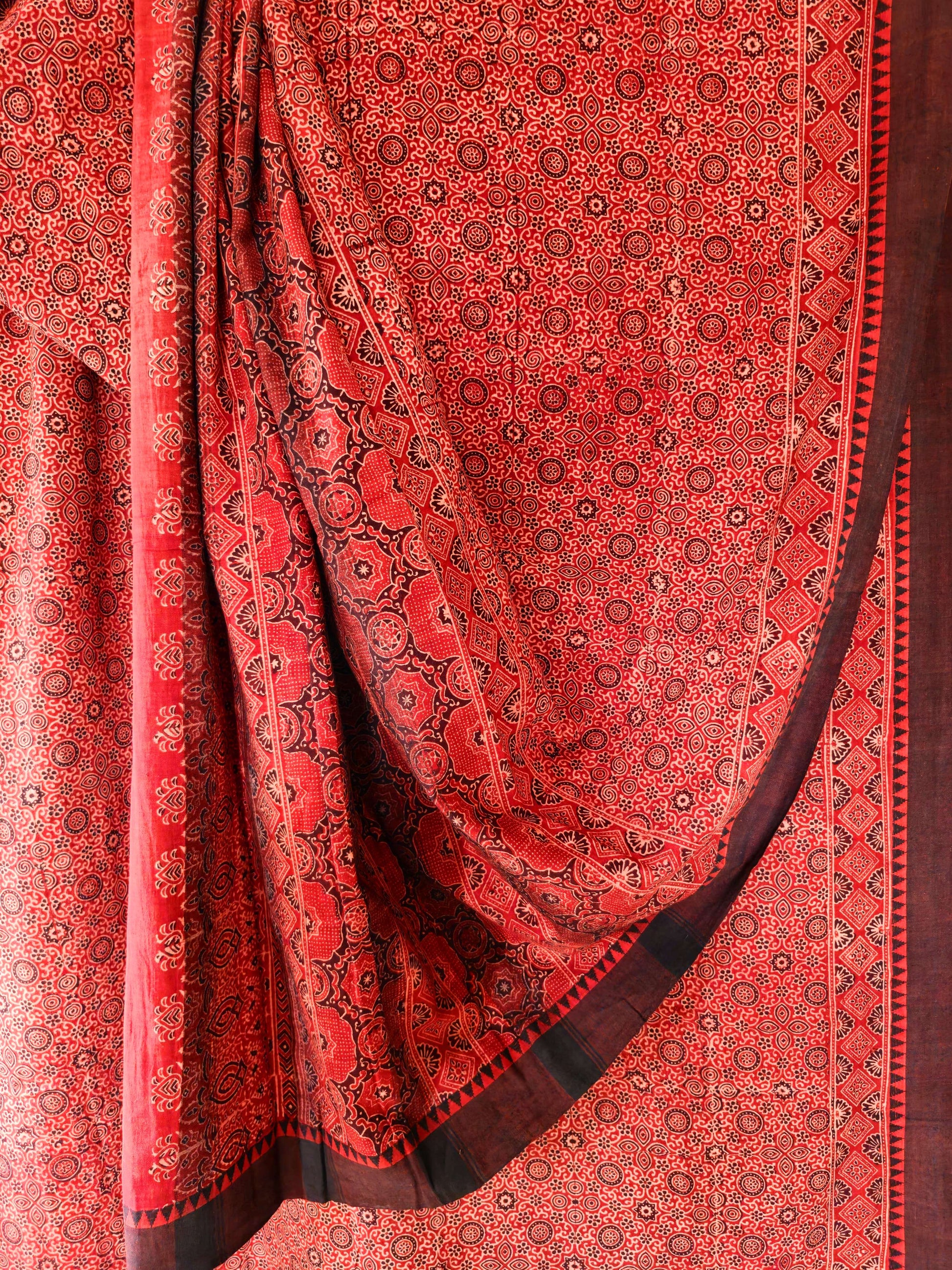AJRAKH SAREE : ALIZARIN RED : BLACK