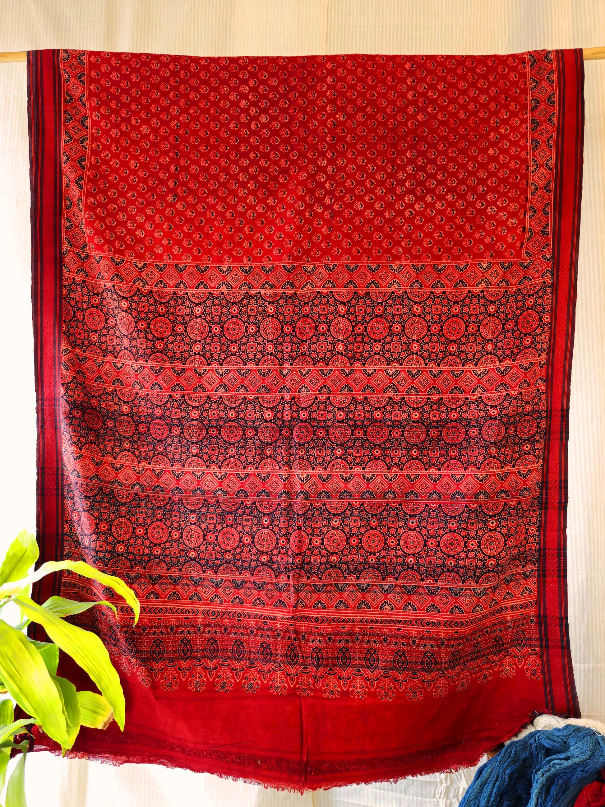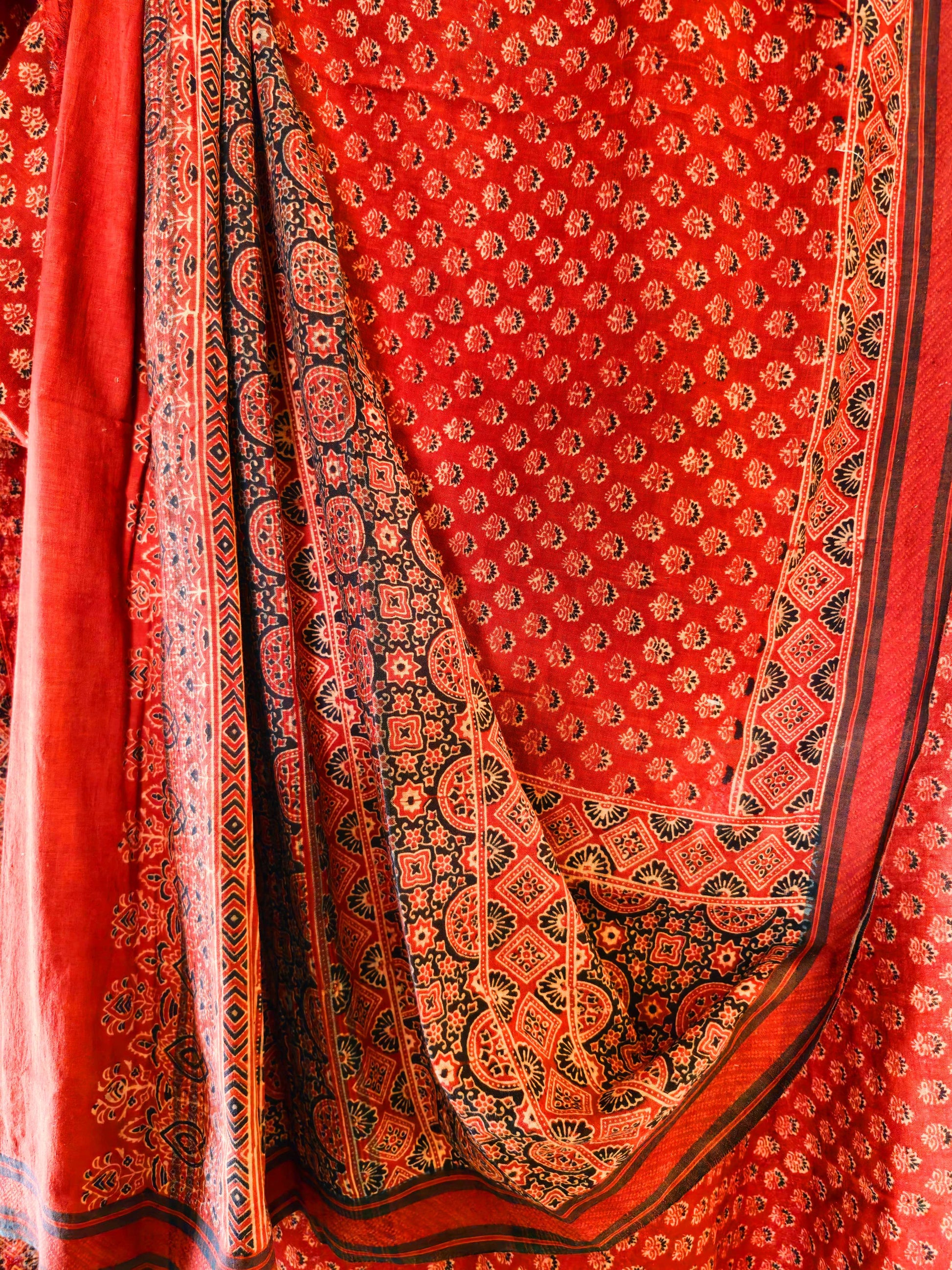 AJRAKH SAREE : ALIZARIN RED : BLACK