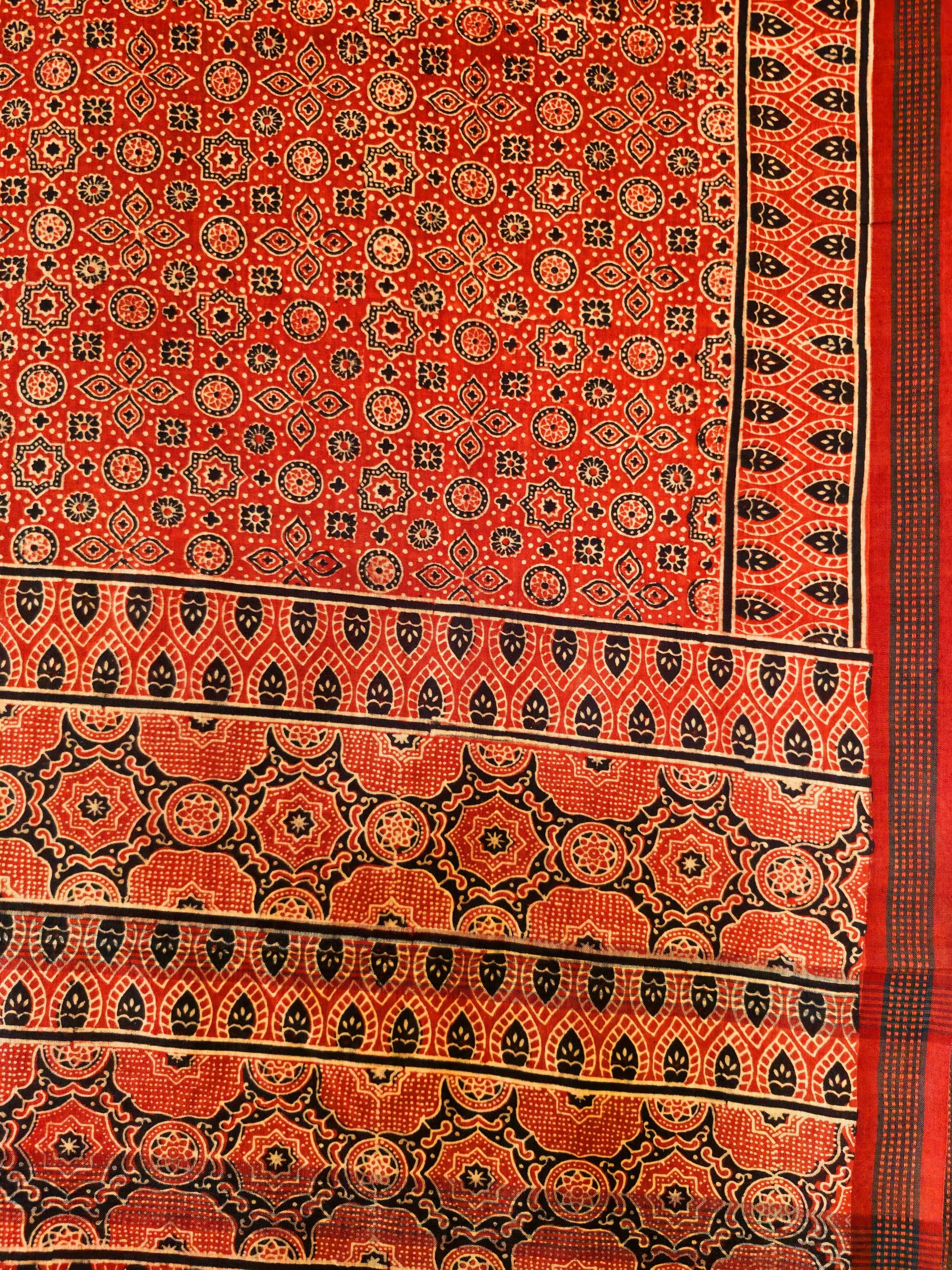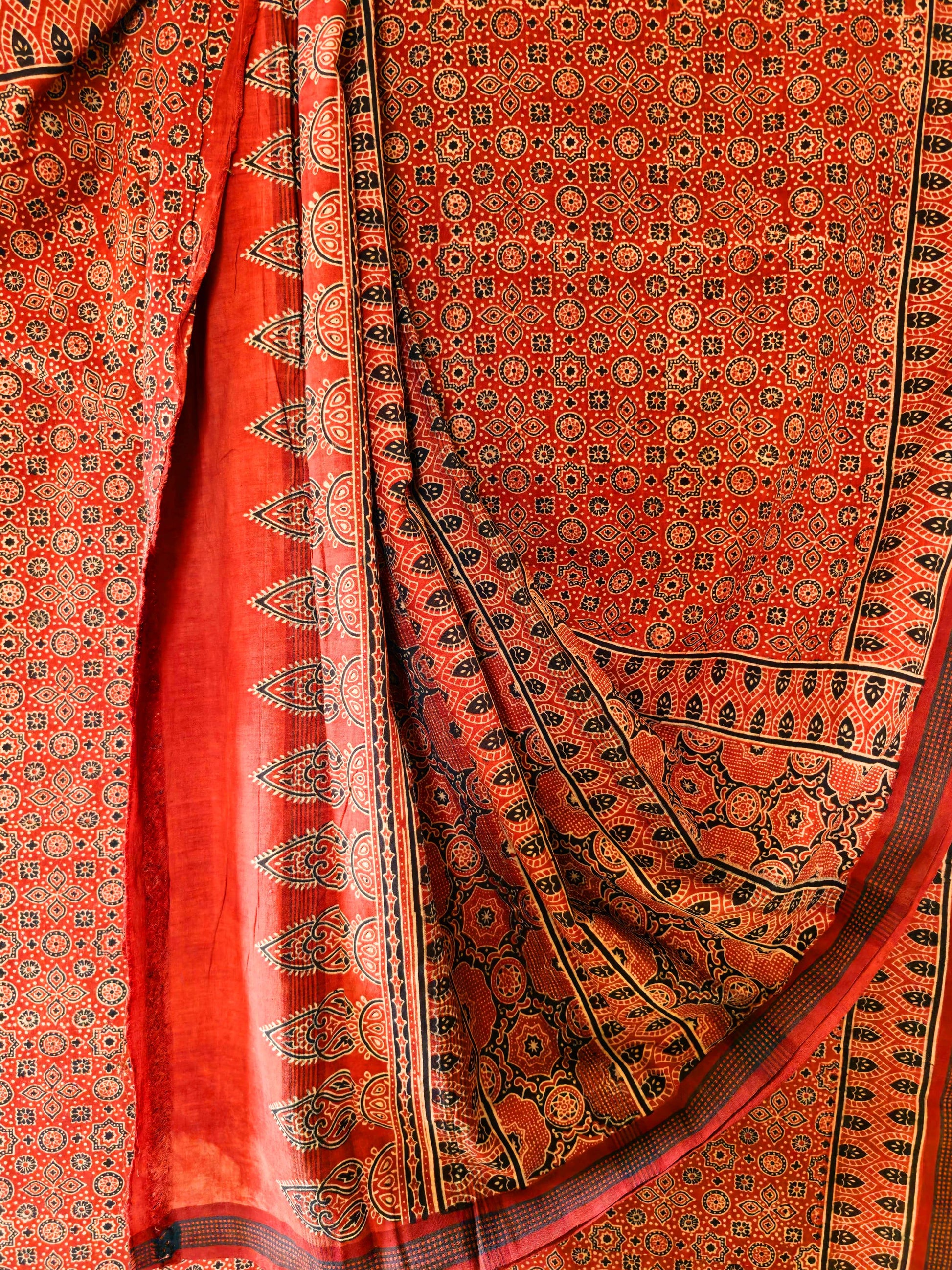 AJRAKH SAREE : ALIZARIN RED : BLACK
