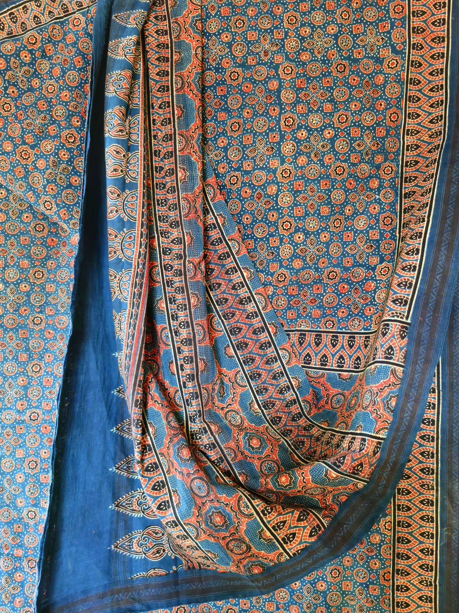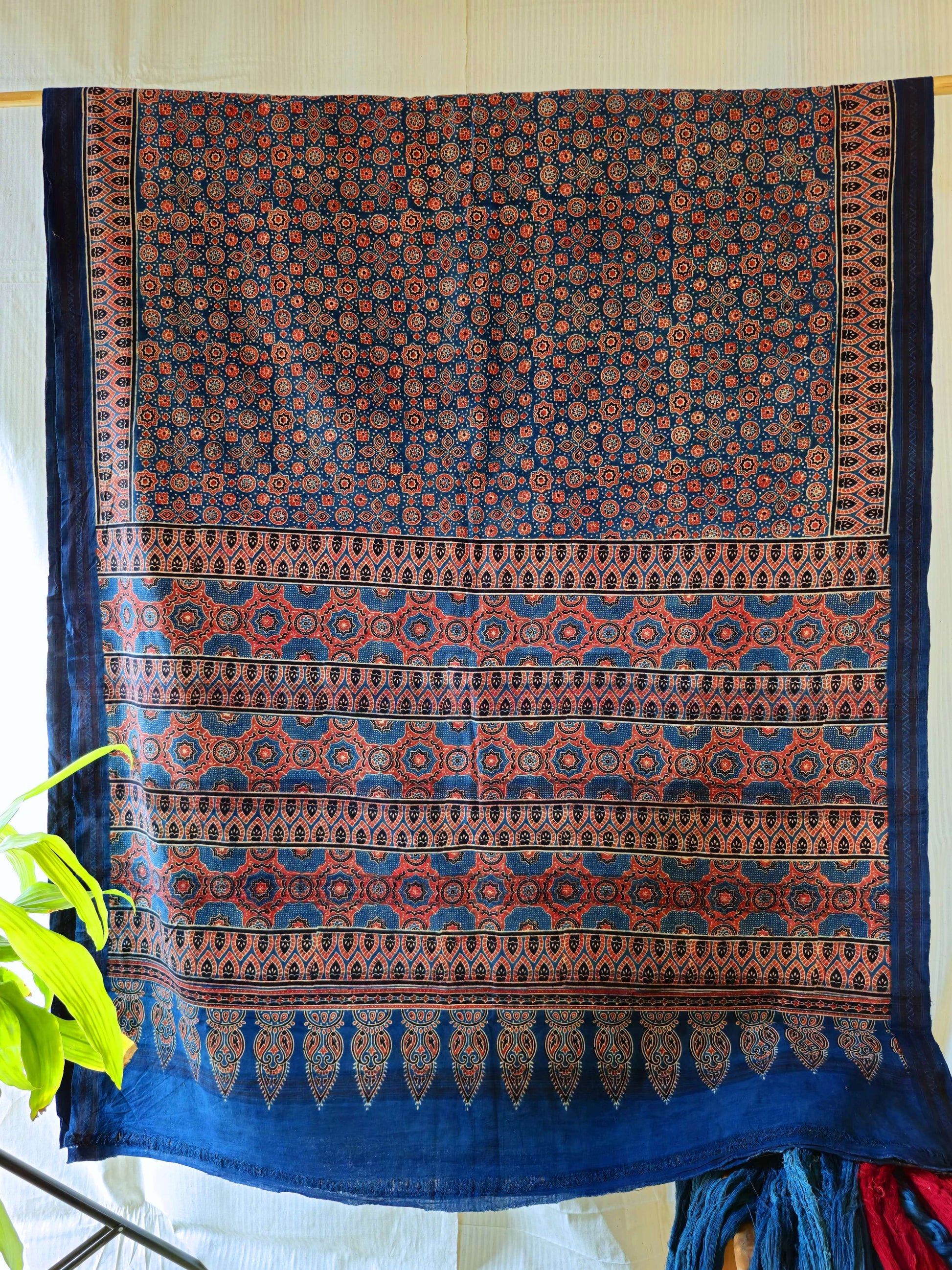 AJRAKH SAREE : INDIGO : ALIZARIN RED