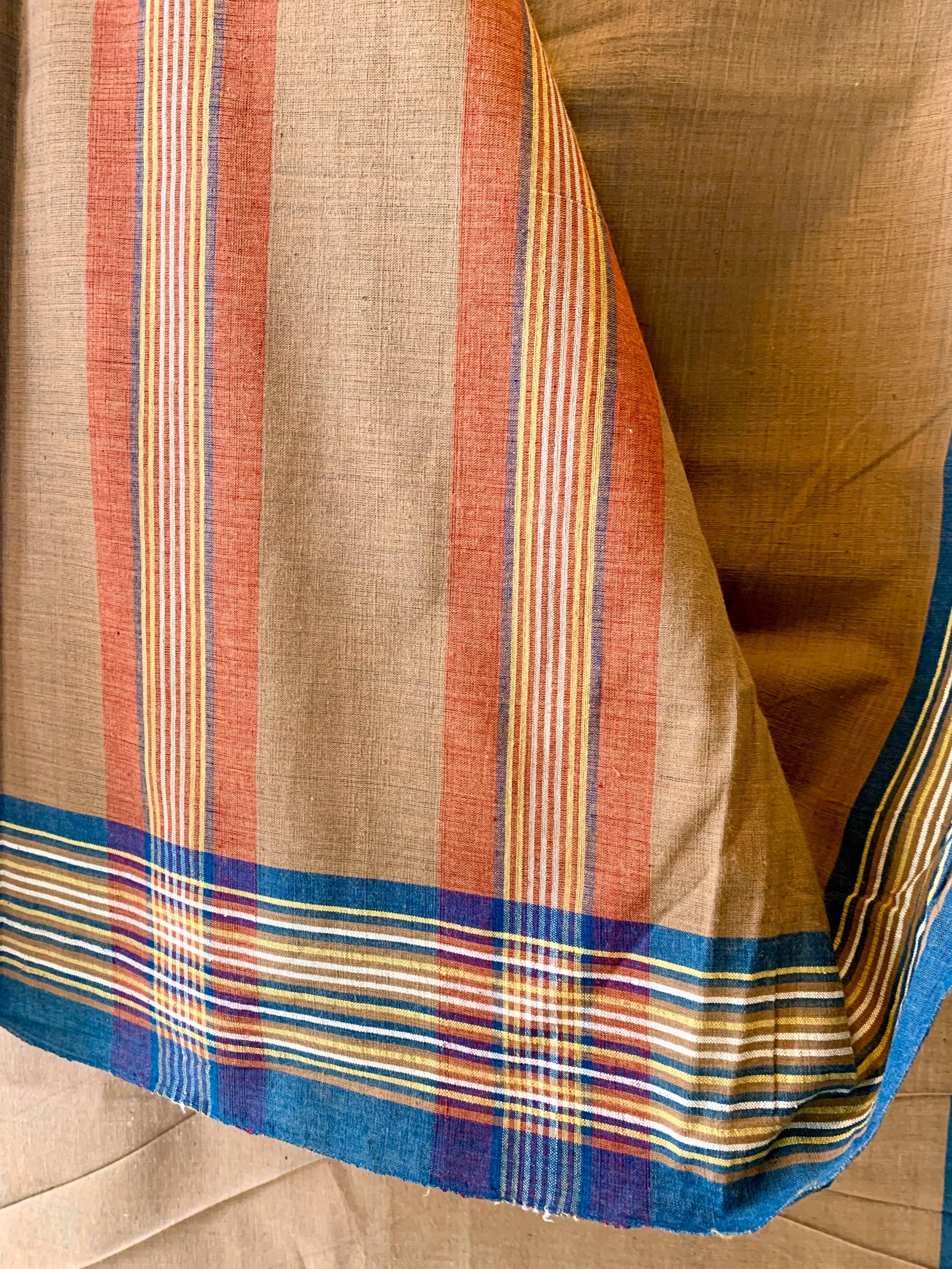 Dyed with the waste from acacia catechu, or katha, the brown paste in betel leaf paans - we’re still debating whether this color is best described as cafe au lait or sandalwood paste. Do weigh in.