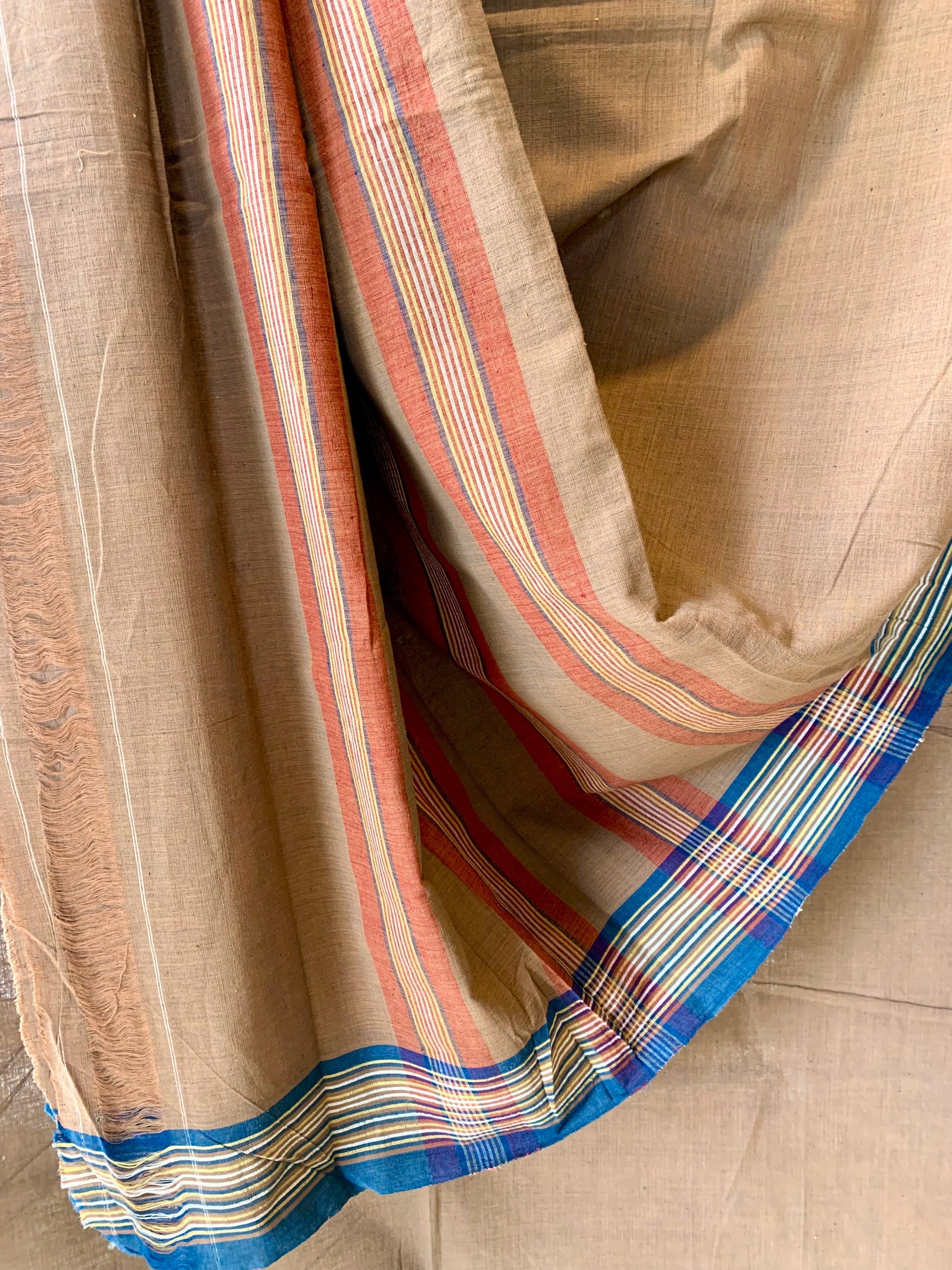 CROSS COLOUR SAREE : KATHA BROWN : ANAR GREEN