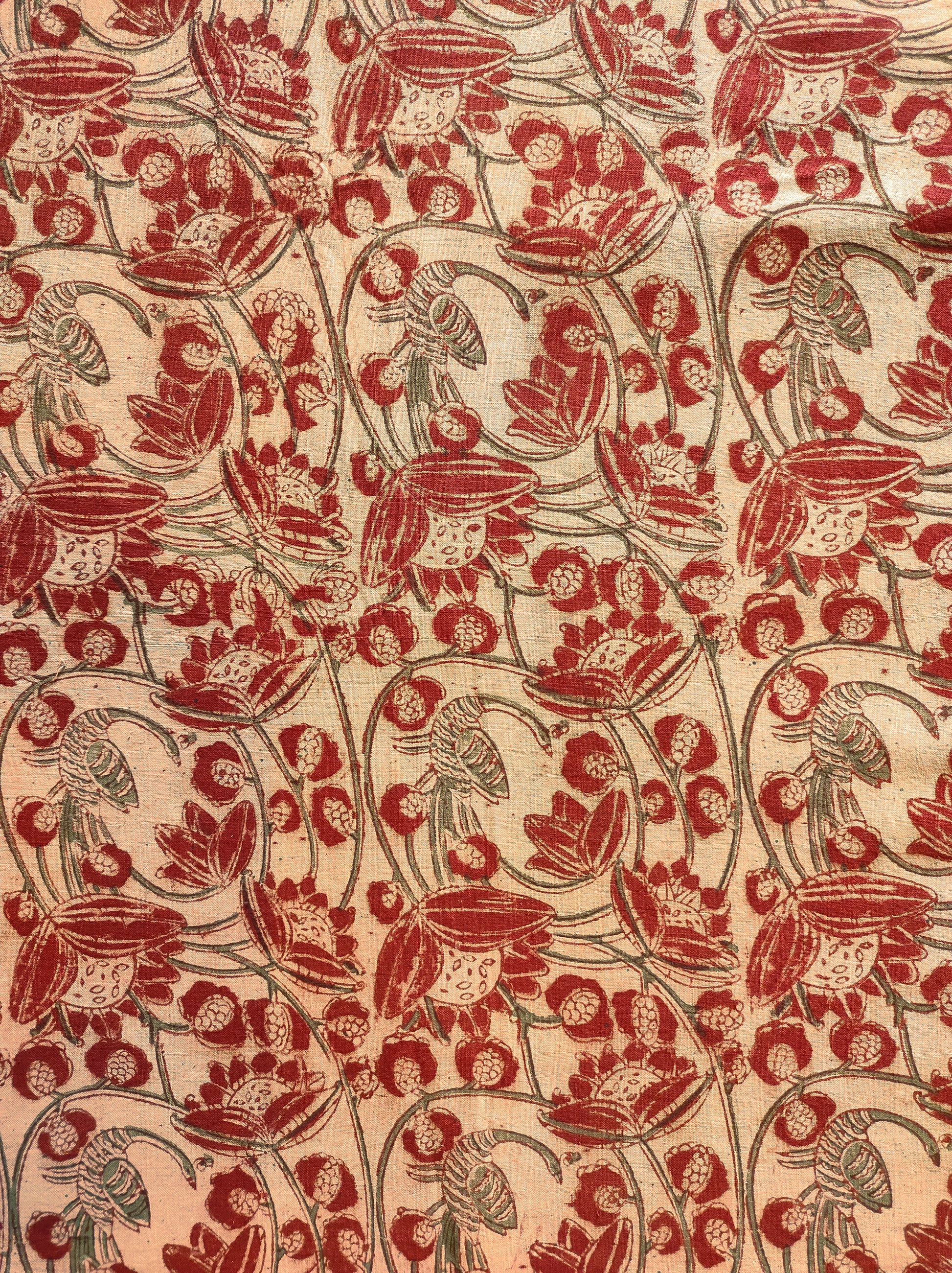 KALAMKARI FABRIC : ALIZARIN RED : ANAR GREEN