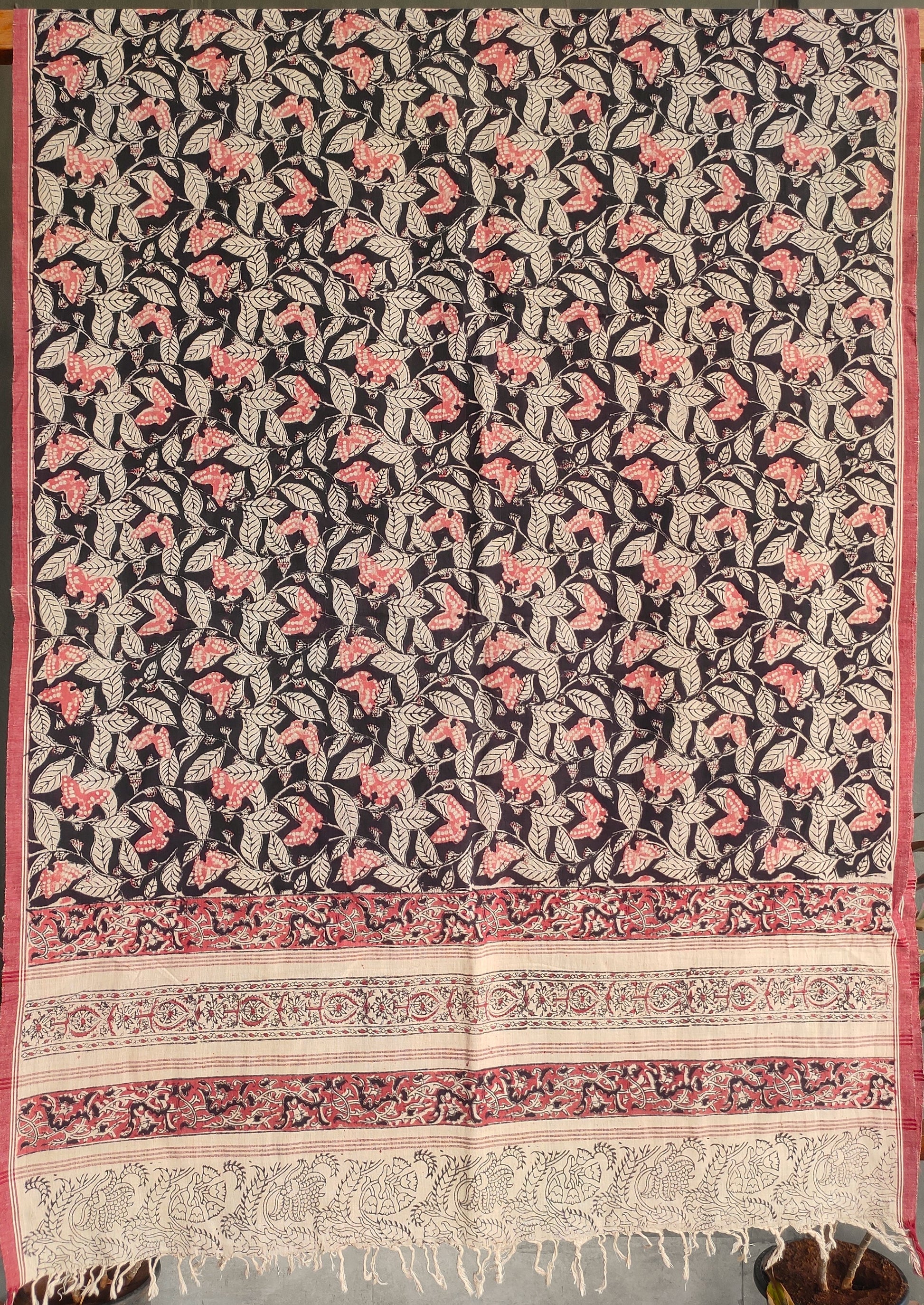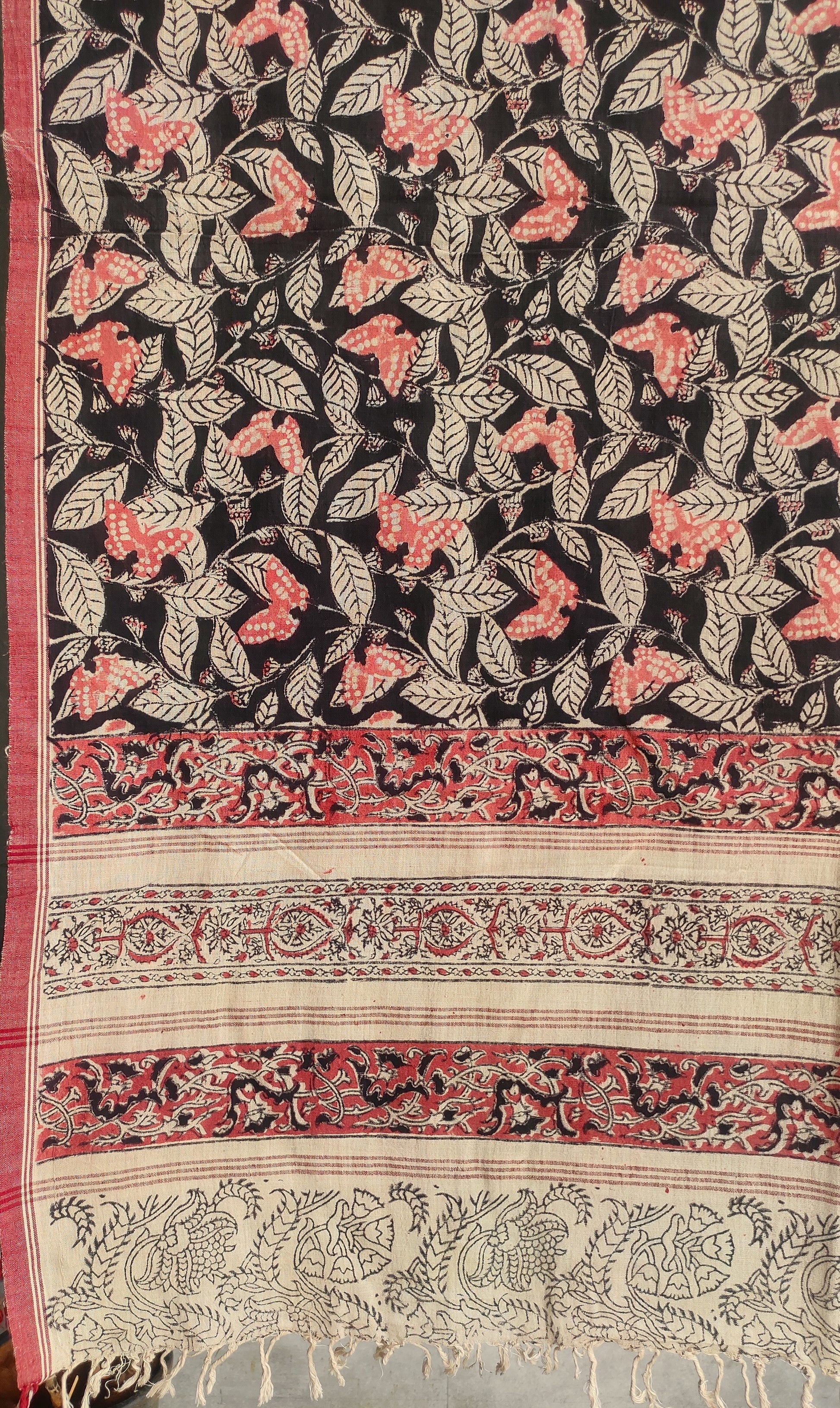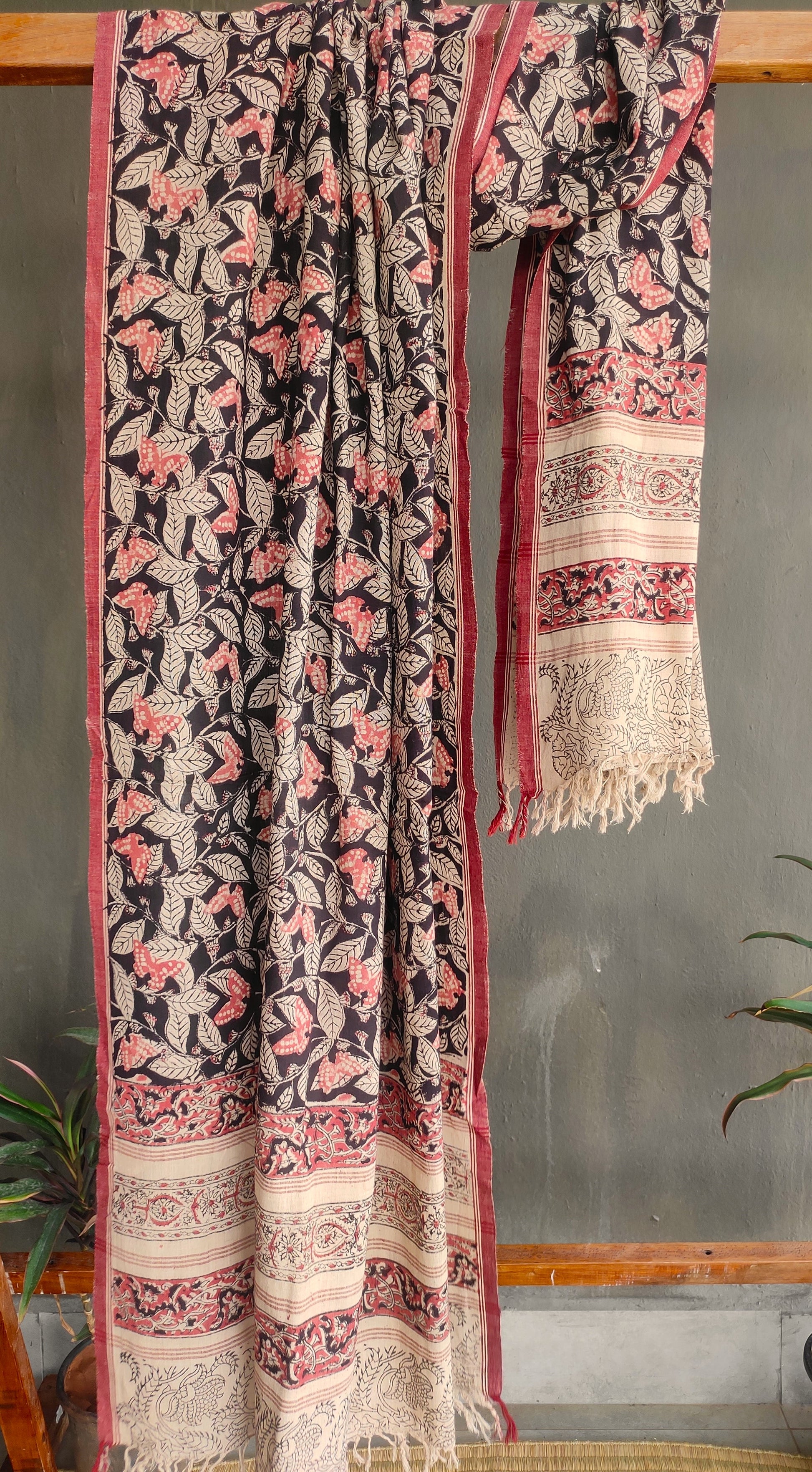 KALAMKARI DUPATTA : ALIZARIN RED : BLACK : KORA