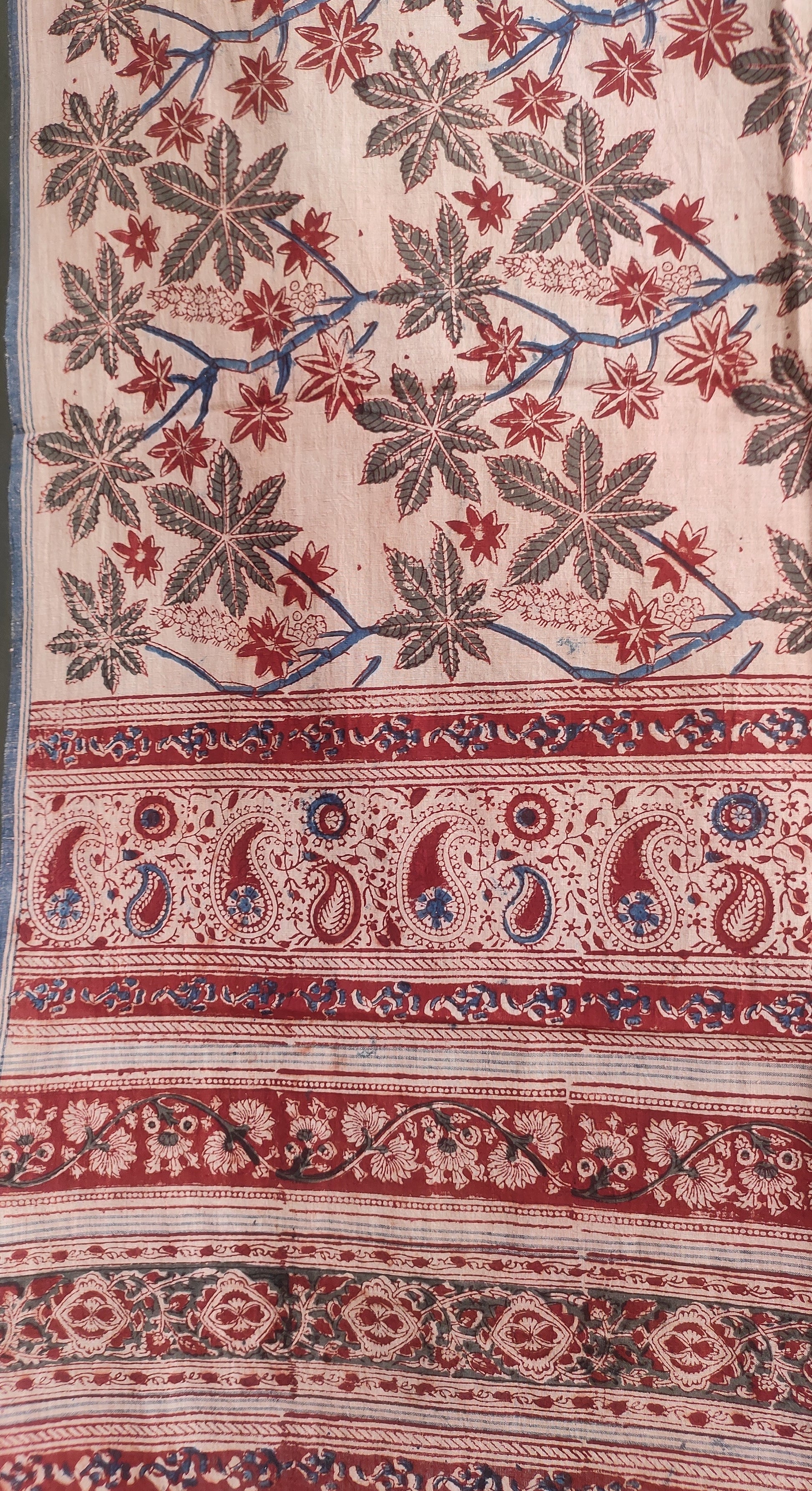 KALAMKARI DUPATTA : ALIZARIN RED : OLIVE GREEN : BEIGE