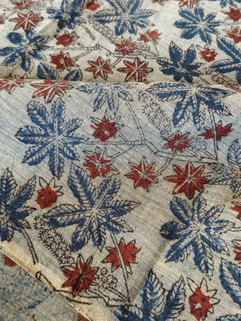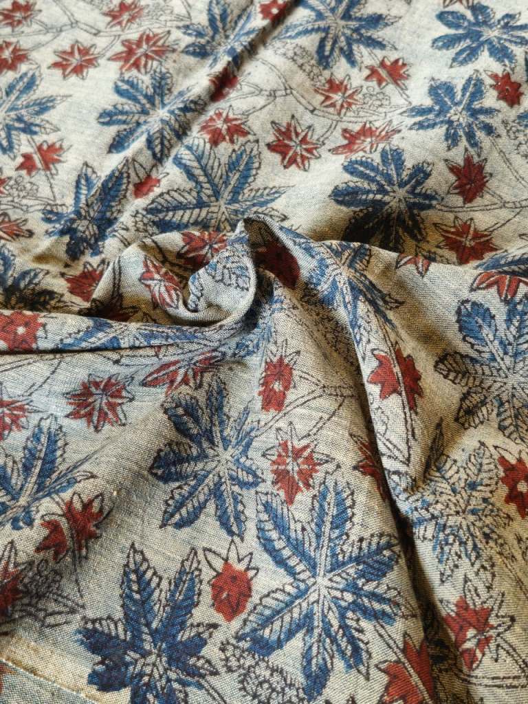 The traditional wooden block printing technique of the Machilipatnam region, some surmise that this was imported from Persia in the sixteenth century. Featuring predominantly botanical motifs, the ones we favor at Malkha feature butterflies, the palapitta and kokila birds, pineapples, peepal leaves and flowers. Our printers pre-treat the fabric to be printed with an exacting method of vegetable treatments.