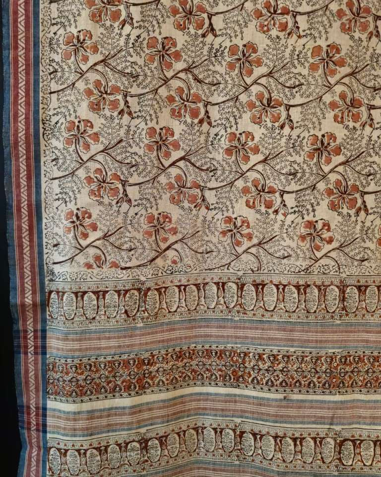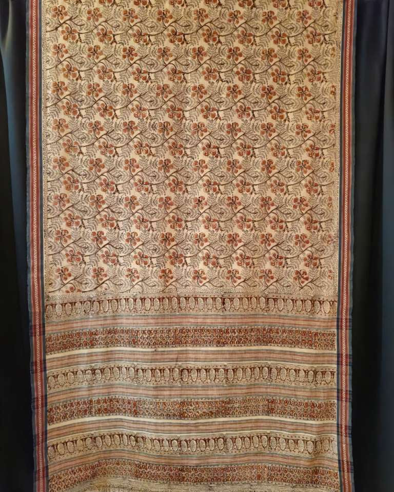 The traditional wooden block printing technique of the Machilipatnam region, some surmise that this was imported from Persia in the sixteenth century. Featuring predominantly botanical motifs, the ones we favor at Malkha feature butterflies, the palapitta and kokila birds, pineapples, peepal leaves and flowers. Our printers pre-treat the fabric to be printed with an exacting method of vegetable treatments.
