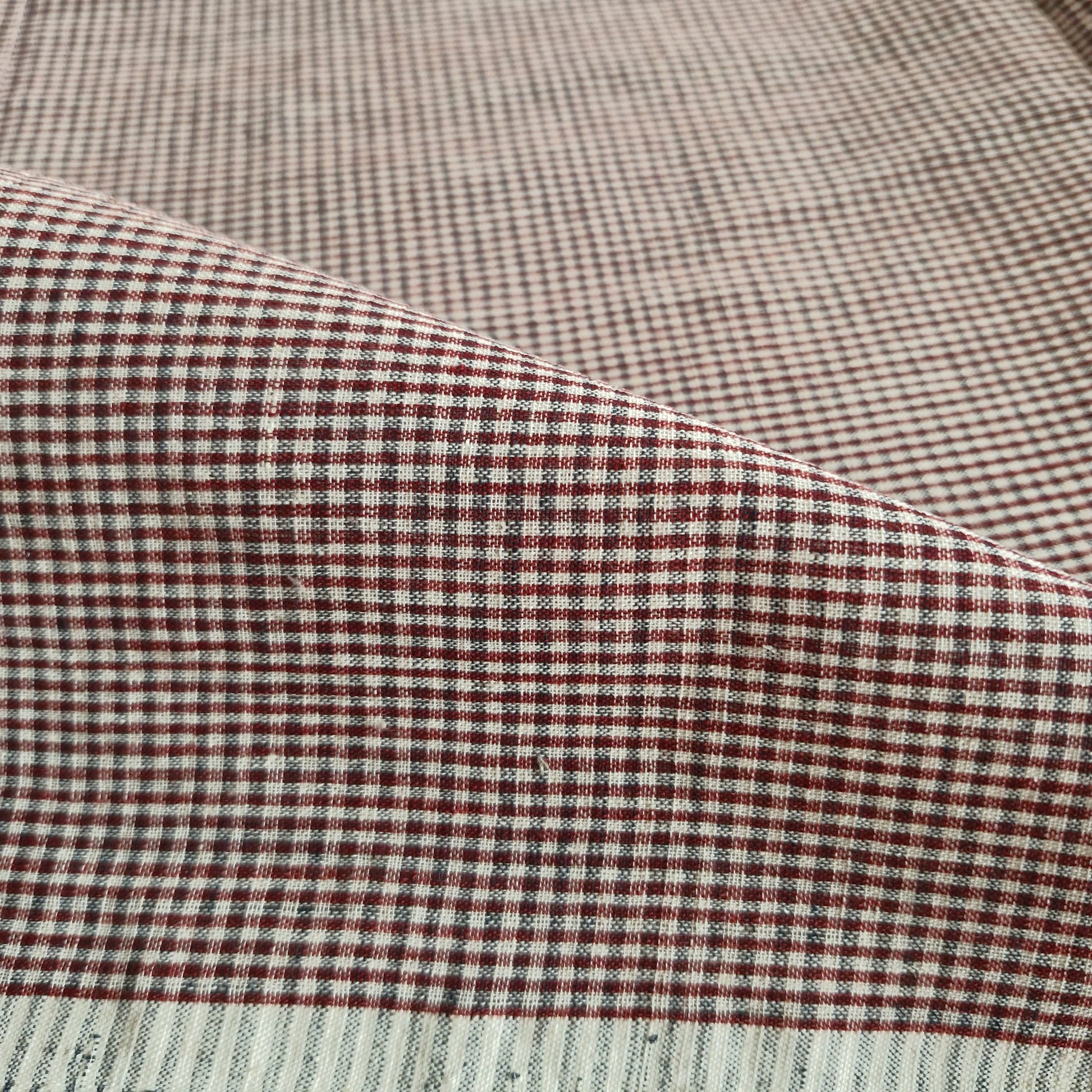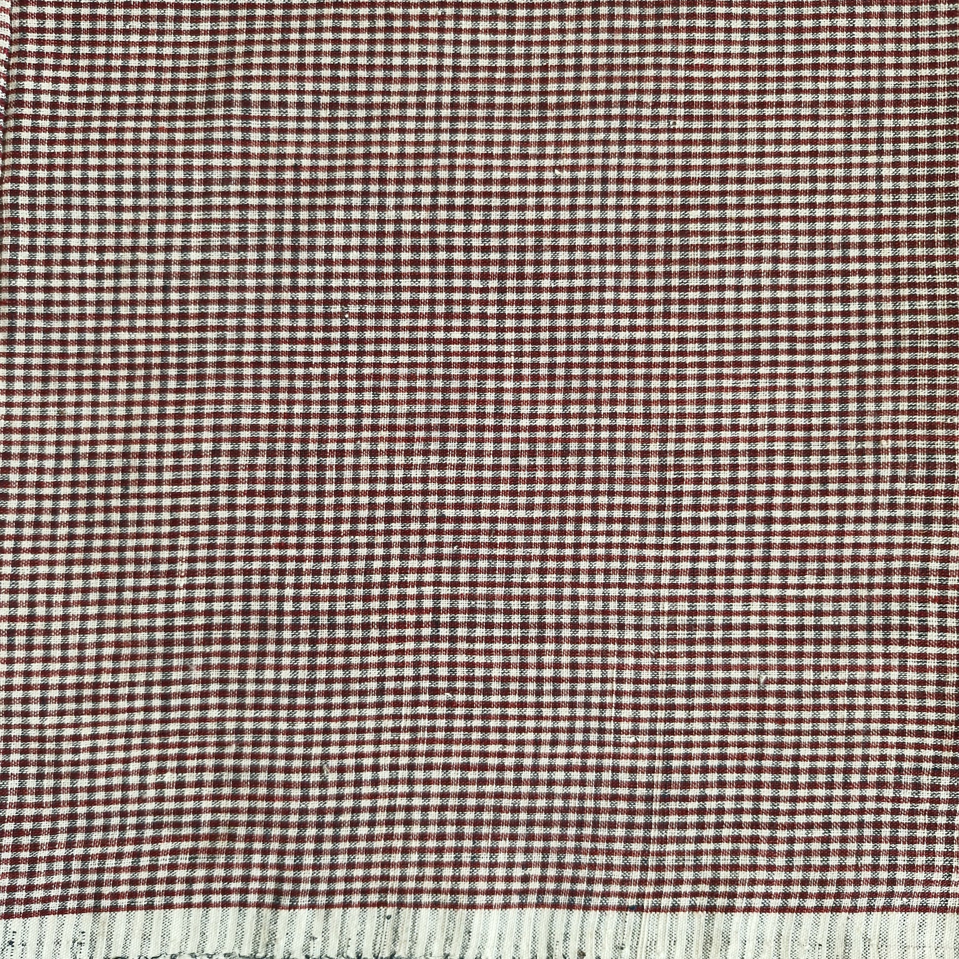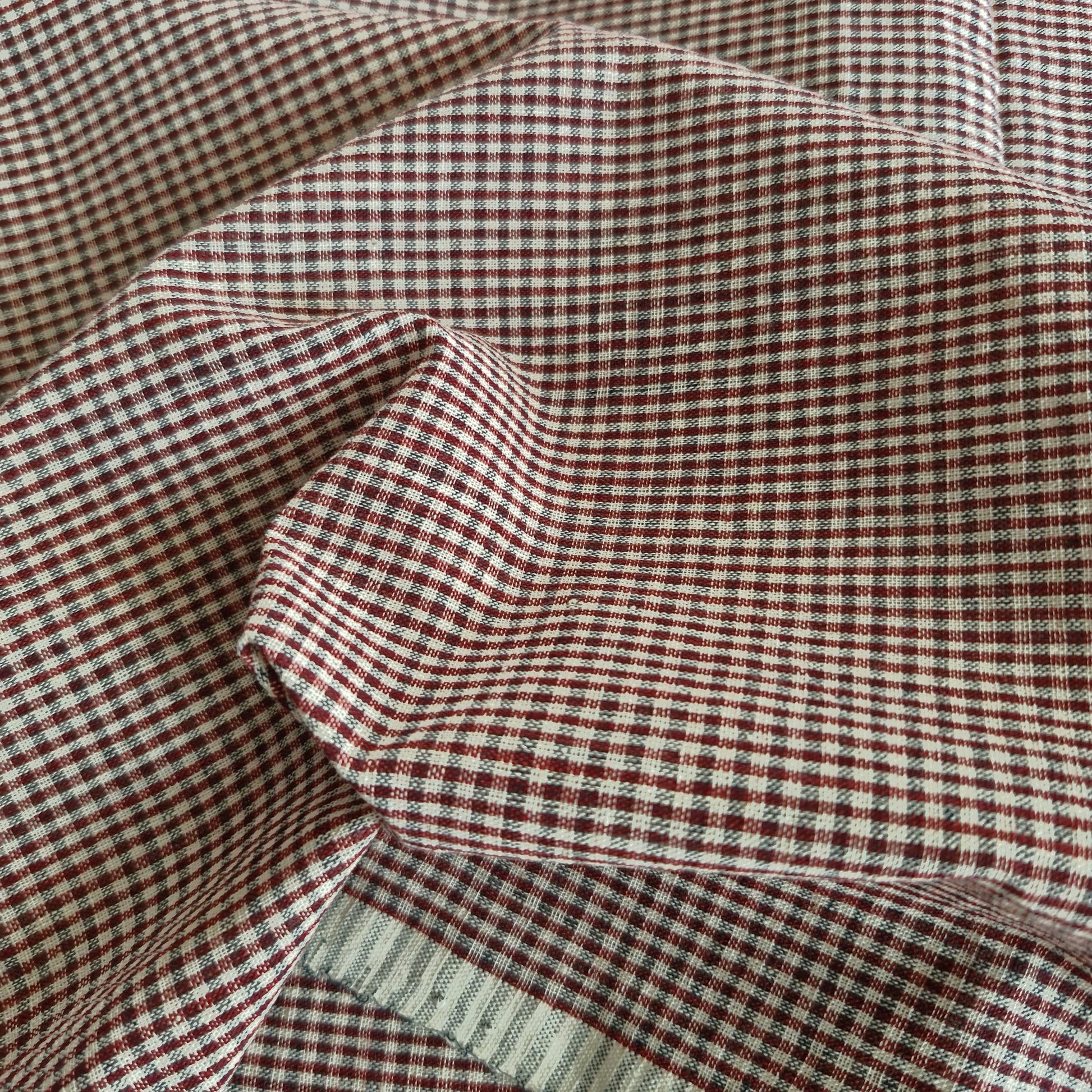 Microchecks require attention to detail both along the warp and the weft of the fabric. The warp must be passed through the reeds of the loom exactly so that the colours in the fabric alternate. Weavers use a two-shuttle loom in order to alternate between the colours in the weft at very small intervals, bringing this subtle texture.