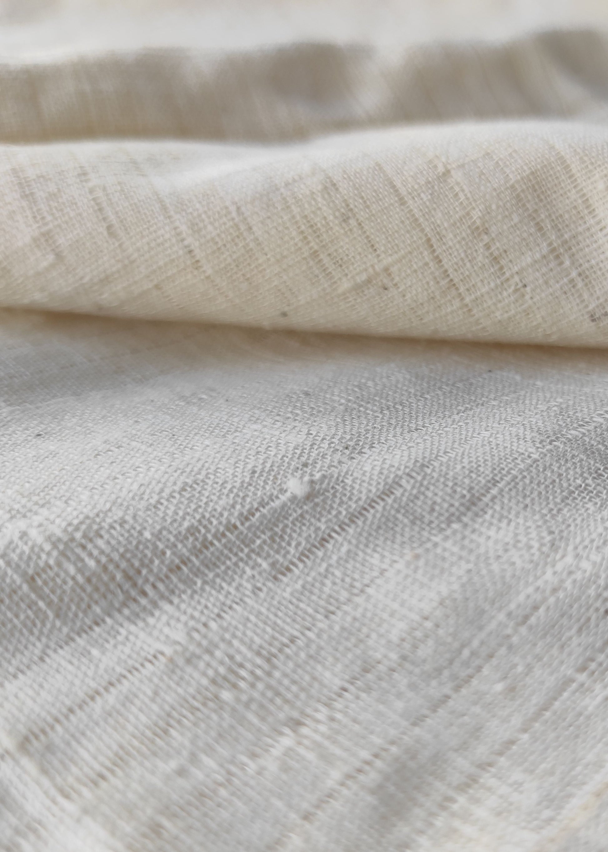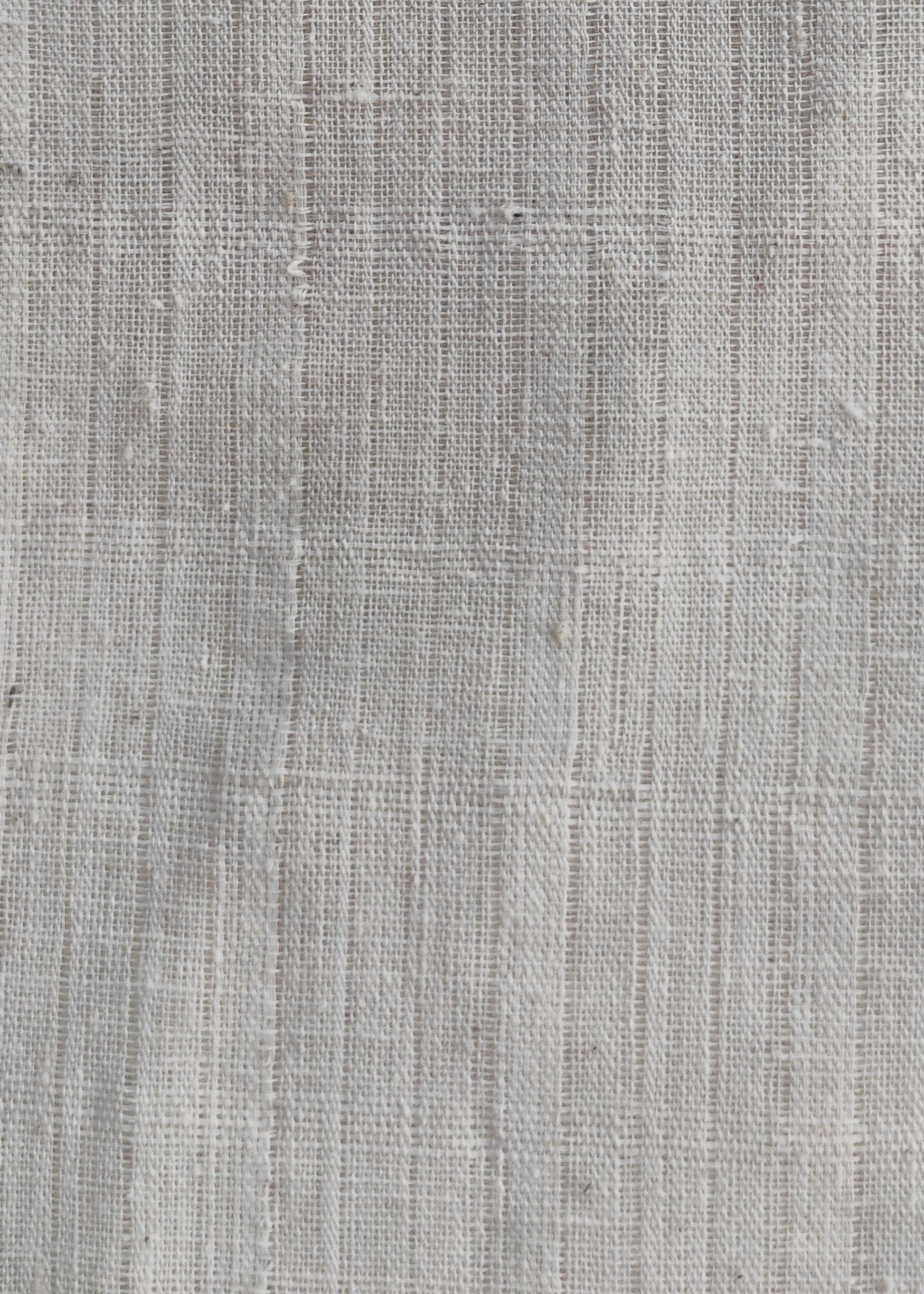 By varying the number of threads used in the warp, weavers achieve this subtle texture in the cloth, creating a pattern amid the plain white surface of the fabric.