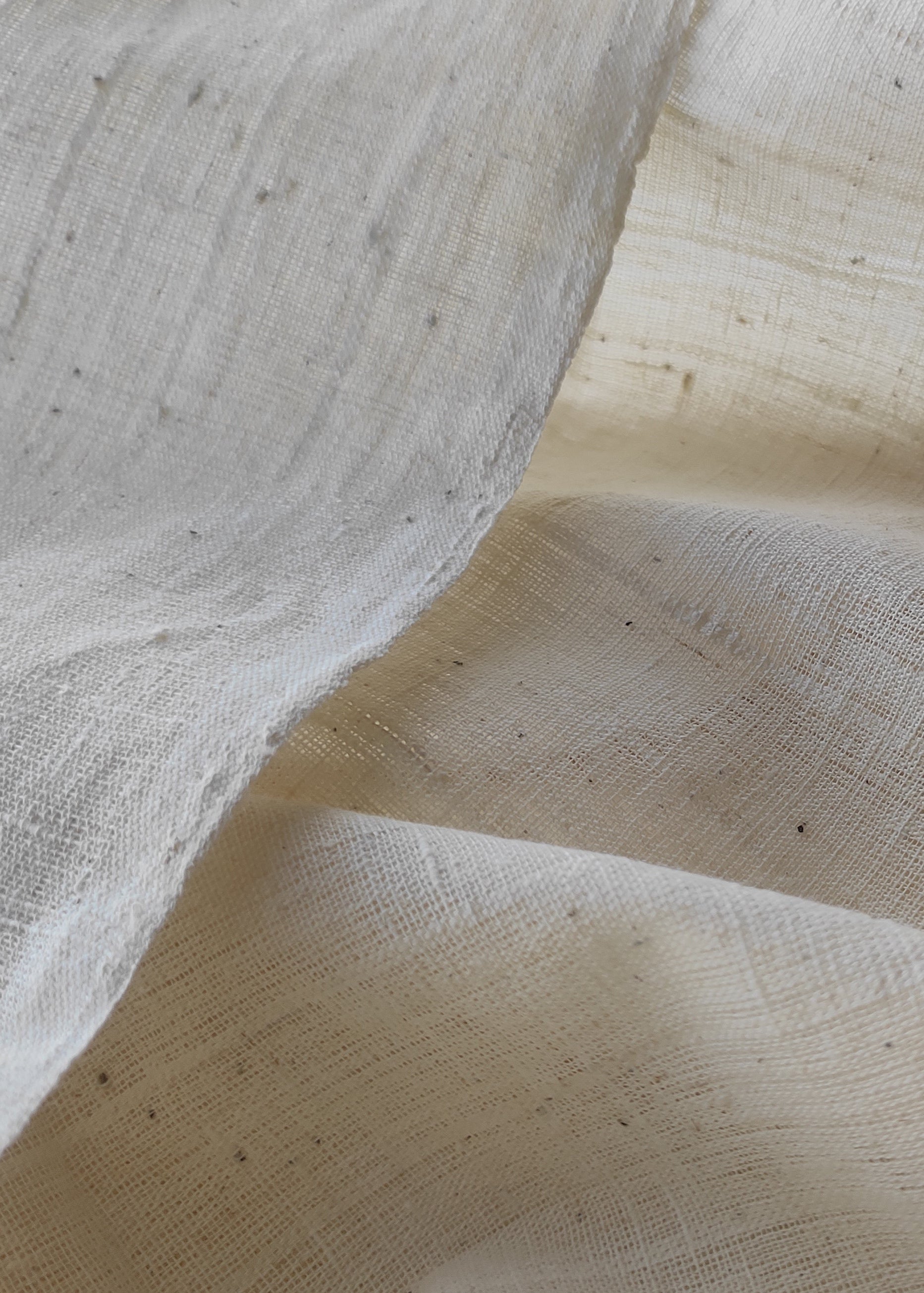 Organic local cotton, decentralised spinning techniques, handwoven density variations.